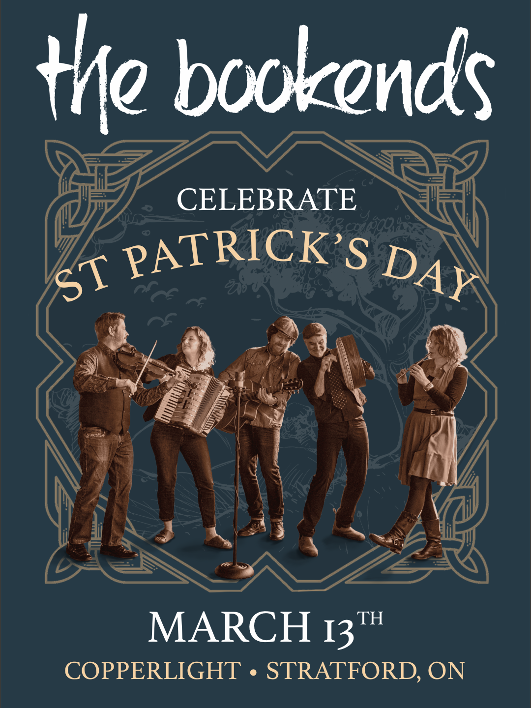 Join The Bookends for a high-energy St. Patrick’s Day concert at Copperlight on Ontario Street in Stratford, Ontario. Known for their driving rhythms and crowd-pleasing arrangements, The Bookends bring a modern spark to traditional Celtic favourites—perfect for a night of celebrating Irish spirit.